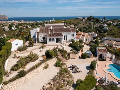 This is a stunning luxury villa which has been recently refurbished with high end quality furnishings throughout. It offers fantastic Sea Views from outside and inside the villa, has beautifully landscaped Mediterranean gardens, open Naya, private pool and Jacuzzi boasting views of the mountains and neighbouring villages.The lounge has 2 large comfy sofas, wall mounted flat screen TV, Air conditioning, Siri, Wifi, Satellite TV, pellet burner for non summer months, and the dining area has a large stone dining table wth comfy dining chairs which leads through to the large modern kitchen. Here you will find all the features you would expect to find in a designer kitchen, including a island with amazing views to the sea.