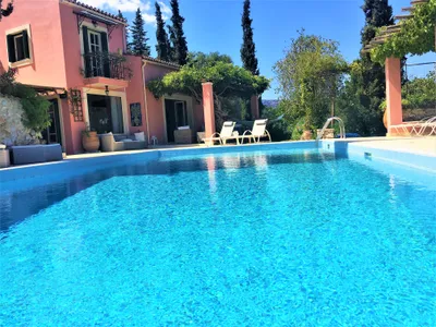 Roz Villa is nestled among cyprees and olive trees on a hillside and enjoys panoramic vistas across the valley over the rooftops of the picturesque harbour of Aghia Efimia and sea views of the Ionian Sea. This villa offers the ideal combination of a traditional villa yet features stylish furnishings throughout with a fusion of old and new artifacts making it the perfect choice for your summer holiday. An attractive well maintained terraced garden with several pergolas provide shady retreats from the midday sun and settings for lazy days by the pool. A well-equipped outside covered BBQ area with patio furniture is ideal for al fresco dining. A 800 meters walk from the harbour of Agia Efimia and a 15-minute drive is the much-photographed beach of Myrtos. The small, enchanting fishing village of Assos, can be found within a 15-minute drive for those wishing to experience a hidden Greek gem. Free ADSL internet connection.Please note that as of this year the Greek government has introduced a new environmental tax of €15 per/day which we are obliged to levy.