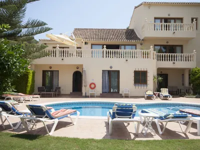 In a peaceful location ten minutes’ walk to all club facilities and a private club beach, our beautiful family villa with private pool and gardens is a must for those wanting the convenience of a home away from home in the sunny resort of La Manga. The six spacious bedrooms, all with en-suite facilities, are perfect for families, couples or friends all looking to enjoy the facilities of the resort; golf, tennis, football, water sports, quad biking, shopping, restaurants, the buzzing nightlife or a relaxing time by the pool.The house has been regularly updated and upgraded over the years and provides all the ammenities allowing you to enjoy a relaxing and stress free holiday. There is wi-fi and air conditioning throughout the property and a great library of DVDs, books and games.
