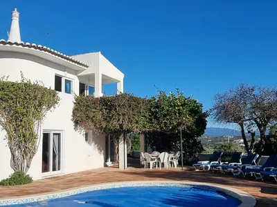 There cannot be many villas in or around Lagos that combine all the following features with views to die for hence the name of our villa. Peaceful countryside location for utter relaxation,you literally could hear a pin drop! Panoramic views over the Bay of Lagos at the front; Monchique hills at the side and the village of Portelas at the back. Easy access to the splendid old town of Lagos with its multitude of restaurants and bars - just 1 mile to the very centre, less to the Marina, plus a private full sized pool (10m x 5m, heated if needed at extra cost) with spacious terraces, set in a lovely secure walled garden with large grassed area for ball games. Pool heating is available at a cost of £150pw and £50 preheat if needed. Please note the villa can only sleep 6 in winter as the annex doubles up as a winter sitting room. In the Summer there is an option to sleep 8 with the annexe at additional cost of 20% of rental agreement. This villa works very well for three generations of a family and also perfect for two families, due to the annex with two extra beds at extra cost. Very baby friendly, we provide all the kit to lighten your load - cot / play pen, high chair, digital baby monitor, steriliser and bottle warmer, even a few toys and a potty! New bathrooms recently installed and kItchen renovated. All bedrooms have ceiling fans, just as effective as air conditioning in the hottest months and much more environmentally friendly and mosquito screens on all bedrooms to sleep with windows open as well. Our villa has been inspected and awarded it's tourist licence 4401/AL. Free WiFi. All bedrooms on ground floor, plus 2 bathrooms, 1 ensuite, and downstairs kitchenette for poolside drinks and BBQ crockery. Marble stairs lead to upstairs sitting room with dining area and main kitchen. Also a large terrace with outdoor eating area with fantastic views and a recently new landscaped garden. Outdoors is a large kidney pool surrounded by spacious terraces, a built in BBQ, a pergola providing a shady area and a large lawn suitable for ball games. At the back of the house is a car park and a citrus fruit orchard, lots of lemons for your G & T's!For let’s over winter for large parties there will be an additional cost for electricity for heating at £120 per week and only £80 for smaller partiesBedroom Details