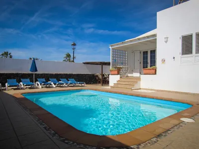Villa Juanita is a Four Bedroom, Four Bathroom Villa, set on two floors situated in the Los Mojones area of Puerto Del Carmen. The shops/restaurants in the old town and harbour areas are about 10 to 15 minute walk from the villa, taxi fare to old town €3.00.This spacious property's main floor has a large lounge/dining room, with sofas, internet television, dining table & seating and well-equipped kitchen, master en-suite bedroom, twin bedroom and further bathroom. The lower level has two bedrooms, two bathrooms and a cinema room with another internet tv.