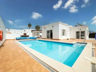 This large spacious sun terrace is perfect for soaking up the Lanzarote sun, surrounding the and 1.2m to 1.8m in depth pool (electrically heated, November to April inclusive), with stepped entry for easy access with six sun beds available for you to soak up the sun all day. Complete with a pool table and tennis table for some fun in the sun.