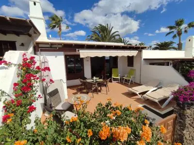 Casas del Sol is one of Playa Blanca's oldest and most prestigious complexes in a prime position opposite the harbour and just a few minutes' walk from the paseo. Its close proximity to the old town, beaches, marinas, restaurants and shops makes it an ideal location and a firm favourite year after year.Villa 17b is a two bedroom (King & Twin) private bungalow comfortably sleeping up to 4 persons. It is ideally situated on this wonderful complex with a south facing patio and panoramic sea views. It catches the sun from morning to evening which, coupled with its walled & gated spacious terrace, makes it an ideal private setting for sunbathing, reading and relaxing.