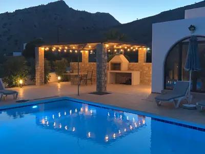 Just returned from a fantastic 9 nights at this beautiful villa. First impressions did not disappoint as the villa is simply stunning and with gorgeous views over Navarone bay and the surrounding mountains And the huge pool wow, I don’t think the pictures truly do this villa justice The villa itself is modern and has everything you could wish for for a relaxing break The welcome pack of beer , wine etc was really appreciated after a long day and the owner Andy cannot do enough for you including recommending local restaurants etc The grounds of the villa are so spacious front and back with so many areas in which to either relax , dine or have a beer. Ideally situated in a peaceful location between Lindos and pefkos ideally you need a car but there are plenty of taxis. We tended to drive into pefkos to eat at night and return in a taxi, then 25 minute walk back for the car in the morning Overall, we thoroughly enjoyed our stay and will definitely return maybe later this year