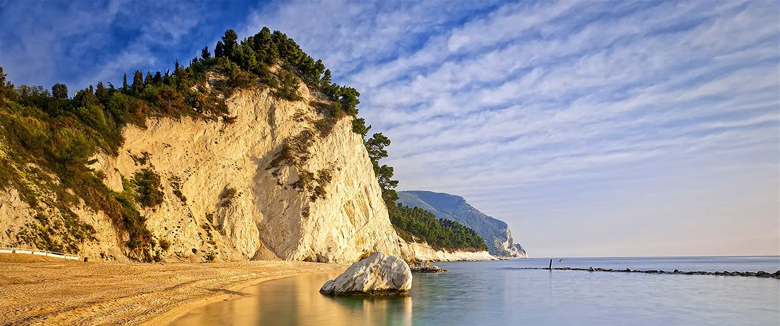 Of the many seaside resorts, one of the prettiest is Sirolo on the Conero peninsula. The Le Marche beaches are renowned for the cleanliness, and you can drive down to the sea and the pebble beaches of peaceful Marotta, with its favoured fish restaurants overlooking the Adriatic sea, or the broad, well organized beaches – sandy (at Senigallia), or pebble and sandy (at Fano). Here, in the medieval town centres, you can enjoy an aperitivo followed by sophisticated shopping and an opportunity to discover the delights of their stylish restaurants or pizzerie. Later, the many delicious Italian gelateria are difficult to resist.