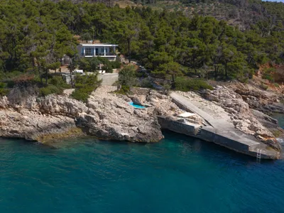 Set amongst pine trees the villa enjoys tranquillity and seclusion. Pathways lead down to a private jetty, with steps to the sea water pool built out of the rocks. This particular part of the island’s undeveloped coastline is a fascinating area to discover with mask and snorkel.