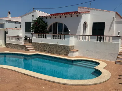 This detached three bedroom, two bathroom villa is found in the popular beach resort of Cala En Porter on the island´s South coast. Located down a quiet cul-de-sac, it is a short walk away from all the shops, bars, restaurants and entertainment that the resort provides, as well as its beautiful beach with white sand and pristine water.Show more