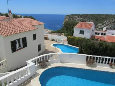 This detached four-bedroom, three-bathroom villa is located in the popular beach resort of Cala en Porter. It offers privacy whilst being only a short walk away from all the shops, bars, restaurants and entertainment that the resort provides, as well as its beautiful beach with white sand and pristine water.The property is divided into the main house and the annexe. In the main house, there are three fully air conditioned bedrooms: one master bedroom with ensuite bathroom, and two twin bedrooms with two single beds each. They all have fitted wardrobes and ceiling fans. These two twin rooms share a full family bathroom.
