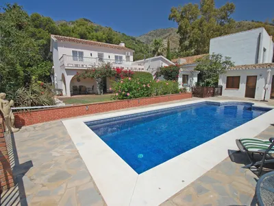 Located within very easy walking distance of Mijas village, Villa Secreta enjoys a private location which is unsurpassed. There is plenty of private parking space to the front of the villa. At entry level is the spacious, air conditioned living area with adjoining dining space. Also at this level are two bedrooms, bathroom, guest cloakroom and a simply superb fully-fitted kitchen complete with dishwasher and dedicated wine fridge. This villa is ideal for those who like all on one level. From here there is the door to the shaded terrace and garden area with its own, gated pool area. The 8 x 4 metre pool has Roman steps which make gettting in and out very easy. Views from here are simply spectacular and panoramic across the Mediterranean. There is a separate laundry room to one side of the garden.The upper level is its own studio with gallery suite, large, air conditioned main bedroom, dressing space and ensuite facilities. There is a full-width terrace at this level where you can sunbathe in complete privacy whilst taking in the superb views and on some days you can see the Atlas Mountains in North Africa - amazing!