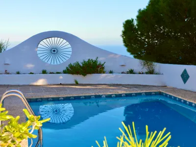 This charming property is quite unique, constructed all on one level the villa is nestled along a hilltop plateau. Villa comfortably accommodates 8 persons. A guest bed is available on request along with a baby cot. Its prestigious position is in a residential area known as La Parata. It has outstanding sea and mountain views. As one of the original villas, it has been constructed with larger than average rooms each with double aspect windows allowing directional breezes to flow throughout the property. Air conditioning and ceiling fans are also in situ in all bedrooms plus sitting room. The four bedrooms each have their own bathroom. There are two bedrooms with king sized beds and two with single beds that can be made into super king sized, if preferred, upon request. All beds have Vi-Spring mattresses. The villa boasts magnificent coastal views along with that of the Sierra Cabrera mountain range and an archaeological site of a 'bronze age' settlement. The numerous outside terraces are quite private and not overlooked, as with areas of the pool.The interior has been furnished with antiques, prints and paintings and yet left quite minimalistic.