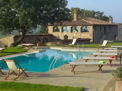 A Luxurious Tuscan farmhouse, private pool, large garden, pizza oven, chef available, with Stunning Views overlooking the Orcia Valley