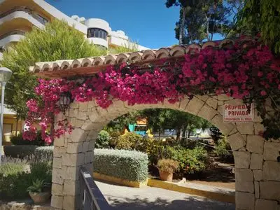 There is a long, but slender terrace accessed by both the main bedroom and living room, and from here you can sit in the cool of the evening - either watching the world go by on its way into Moraira or looking across to the villa-dotted hills in the near-distance. There is also a large shared pool (with large divided-off shallow section for kiddies) which was completely refurbished in the winter of 2018, on the roof terrace, which is open Easter to mid-October, There are shady trees in the gardens to the front of the apartments, and a kiddies playground. There is a small (seasonally opening) fun-fair within walking distance specifically aimed at younger children.