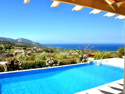 Villa Zefyros is registered with and licenced by, the Republic of Cyprus, Deputy Ministry of Tourism, Self-service Accommodation. Registration Licence: AEMAK - PAF - 0002553 Villa Zefyros, owned and personally managed by Keith and Wendy Watkins, is a beautifully furnished three-bedroom villa sleeping up to four persons (children five-year-old and above), with a private infinity/vanishing edge swimming pool and a secluded garden. All rooms have free air conditioning, free central heating and insect screens. A substantial welcome pack is provided. The villa is on an exclusive small development with a private gated road situated 125 metres (410 feet) above sea level with spectacular, panoramic views of Chrysochou Bay and the natural, protected Akamas Peninsula. The traditional 300 year-old Cypriot village of Neo Chorio is within walking distance and Latsi (Latchi) harbour, beaches, restaurants and shops are a few minutes drive away. The villa has ample outside furniture including a dining table, chairs, a large fixed shade, a gas BBQ, sun loungers, sun umbrellas and a pergola. The open plan ground floor has a living and dining area with very comfortable furnishings, TV, DVD, CD, MP3 Player/iPod dock. The Internet TV system has a vast quantity of international television channels and radio stations, as well as video channels with over 11,000 films! There is also a collection of books. The fully fitted kitchen includes an oven, hob, washing machine, fridge/freezer, two microwaves and a dish washer. A ground floor bedroom has bunk beds, fitted wardrobes and a massage chair and it opens onto a small verandah with direct access to the garden. There is an adjoining toilet with a wash basin and shower cubicle. Upstairs the stunning master bedroom with a four poster bed has fitted wardrobes and an ensuite bathroom, with a bath, shower, toilet and wash basin. There is a safe for guests' valuables. This bedroom opens onto a large balcony overlooking the swimming pool and garden and has chairs and sun loungers. A second upstairs double bedroom has fitted wardrobes, an ensuite bathroom with a shower cubicle, toilet and wash basin and it opens onto a small balcony. Spiral stairs from the first floor balcony leads to a roof terrace "Sunset Bar" with a wooden bench table to enjoy the magnificent 360 degree views of the Akamas Peninsula, Chrysochou Bay, Latsi (Latchi) Harbour, Polis Chrysochou, the coastline around to Pomos and the hills of Pafos Forest.49 Reviews