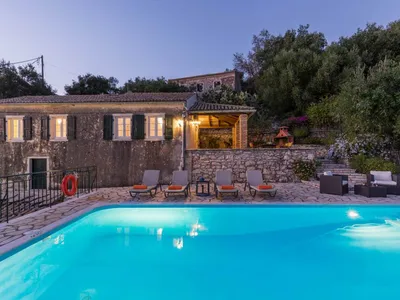 Villa Ioanna, on the outskirts of the hamlet, has stunning views across the sea to the coastline stretching between Albania and Greece and along Corfu’s east coastline down to the Venetian fortifications of Corfu Town.Ioanna’s owners have renovated their old stone house retaining original features whilst adding modern comforts. The result is a charming and private home with a series of open and shaded terraces, from which one can enjoy the dramatic sea view.