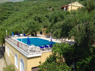 Amalia Studio (Sleeps 4-5)The studios of the complex can accommodate 4-5 persons. Each has 2 bedroom, one with one twin bed and one with 2 single beds. It is decorated traditional, has got a bathroom, a kitchen, with oven, refrigerator, dishes & utensils, a private balcony with fantastic sea view, a small back yard, free Wi-Fi, A/C and TV. You can use for free our large swimming pool shared only for the Amalia complex clients and the ping-pong table (there are plenty of tables & chairs, sun beds and sun umbrellas available around the pool).with 2 single bed or a twin bed, decorated with traditional furniture, free Wi-Fi, a fully equipped kitchenette and dining area, a private bathroom with a shower and a private balcony with amazing sea views. The studios also offer air conditioning and TV. You can use for free our large swimming pool of 18mts x 10mts shared only for the Amalia complex clients and the ping-pong table (there are plenty of tables & chairs, sun beds and sun umbrellas available around the pool). Very nice and clean with fantastic view to the sea of Ionia and the gulf of Corfu.