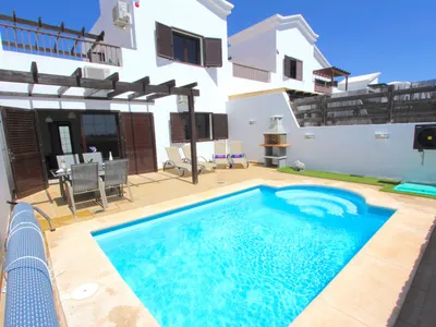 This lovely villa is on the front line of the complex, hence wonderful sea views across the Marina and across the Ocean to Fuerteventura.It is within walking distance of the Marina Rubicon with its exclusive selection of waterfront bars, restaurants and designer shops, as well as being conveniently situated for the Playa Dorada and the wonderful Papagayo Beaches.
