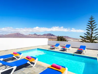 Lovely atmosphere, STUNNING views of the mountains, Playa Blanca & across the sea.It is a beautiful, private 8 person villa which is not overlooked, has a large terrace leading out to a private, heated pool with built-in steps allowing for easy access.