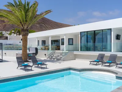Welcome to Casa Yasmine in Las Laderas, Playa Blanca, Lanzarote – one of the most spectacular villas in the area. This luxurious 6-bedroom, 4-bathroom villa embodies elegance and comfort, offering the perfect retreat for an indulgent holiday.Open-plan living spaces are adorned with contemporary artwork by a local artist, complementing modern furnishings harmoniously paired with bespoke wooden tables, adding a subtle rustic charm.