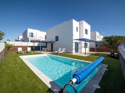 With stunning views across the ocean to Fuerteventura, the well thought out landscaped garden and pool area has lovely artificial grass and terraces for sunbathing, with sunbeds and al-fresco, shaded dining for 6.
