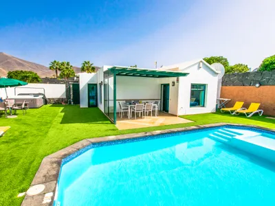 Villa Los Arcos is a lovely 3 bedroomed villa located in Olivina Beach, a pretty private residential community in Las Coloradas, Playa BlancaThis Playa Blanca villa has a fabulous large, heated pool with a shallow area for children to play. There’s a pool table to challenge your family and friend on and a hot tub with views across neighbouring mountain ranges…