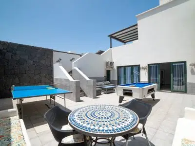 Ideal for a special celebration holiday...... 2 bedrooms, 2 bathrooms, (Air Con Optional). Pool. Hot tub, Pool Table, Table Tennis and BBQ.Villa "Rich" is only a 15/20 minute flat walk to the beautiful Playa Dorada beach in playa blanca or 5 mins by car. The beach has been awarded on various occasions for its beauty, a peaceful and pleasant spot .