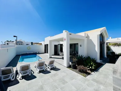 This modern and beautiful villa with 2 bedrooms (2x double), 1 ensuite bathroom with walk in shower and 1 family bathroom with shower over bath, full equipped kitchen and large lounge with leather sofa and dining table is a perfect base for your Holiday!Casa Angelita Y Pablo has a lovely and private garden with an electric heated pool, large terrace with sun beds and a large (covered) dining area with table.