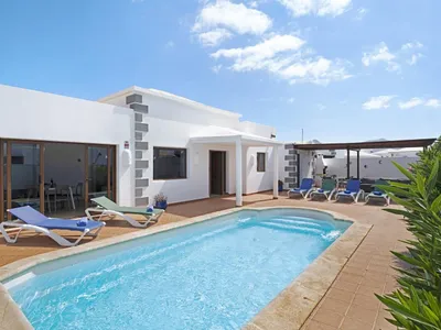 Casa Elian, Playa Blanca is a well located modern holiday villa close to the resort centre. It has a pretty garden with a private electrically heated and covered pool..The master suite has a double bed, ample wardrobe space, window to side garden area and an amazing spacious en-suite with corner shower and double luxurious bath. It also has air conditioning (pay as you use). There is also a further double bedroom and a twin bedroom which share the family bathroom which has a double shower. All the important windows have mosquito screens on so no getting bitten on those hot summer nights!