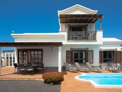 Outside, the villa’s sun-soaked terrace surrounds a private swimming pool (size: 3.50m x 8.00m, depth 0.80m to 1.40m), perfect for cooling off under the warm Lanzarote sun. With plenty of loungers available, guests can relax poolside, while the shaded veranda offers a great space for al fresco meals or reading in comfort.