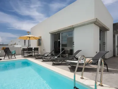 Outside, there is a private heated pool (dimensions: 5.60m x 2.00m, depth 1.50m to 1.30m), allowing you to enjoy swimming year-round. The south-facing sun terrace and dining area make it the perfect spot to relax by the pool and soak up the Lanzarote sunshine in any season.