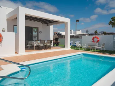 Casa Salada is located in the peaceful residential community of Las Buganvillas, just a 15-minute walk from the promenade and the heart of Playa Blanca. The villa features 3 bedrooms and 3 bathrooms, making it perfect for family and friend groups. Inside, the villa is stylishly decorated with a bright, spacious lounge and dining area. The master bedroom includes an ensuite bathroom, while the two additional twin bedrooms each have their own ensuite or adjacent bathroom. The villa also boasts a fully equipped separate kitchen, ideal for preparing meals for family and friends. Air conditioning is available throughout the property for your comfort. From the lounge, you can step directly out to the covered alfresco dining area and south-facing sun terrace surrounding the pool (dimensions: 5.80m x 2.90m, depth 1.00m to 1.50m). A charming built-in BBQ is located at the side of the garden. Everything you need for the perfect villa holiday is already provided at Casa Salada. Situated in a quiet residential area with minimal traffic, it offers peace of mind for families with children. With all local amenities just 15 minutes away, the location is ideal for guests of all ages, providing everything you need for a memorable holiday in Playa Blanca.Bedroom Details