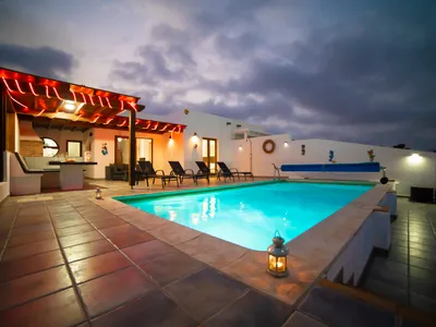 By John on 02-Dec-2017The elevated position of villa 495 is out of the main Playa Blanca town and so a car hire is recommended. The views of Playa Blanca in the distance with the flickering lights at night is beautiful. The pool and hot tub are a real benefit. The tub is surrounded by artifical grass ( real grass does not thrive in the Sahara type conditions!) and is very soft on your feet. There is a games room and barbecue, but we did not need to use either. The external dining area is convenient to the barbecue and the well-equipped kitchen. There is sufficient space for the family. There were 4 adults and a baby in our party in November and we enjoyed the peace and tranquillity. The three bathrooms were clean and well equipped; very convenient for the family. Enjoy your stay.
