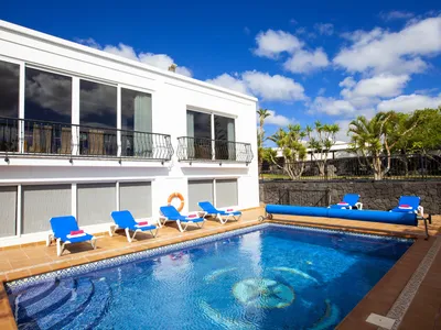 DescriptionThis unique accommodation offers both privacy and tranquility, set in its own extensive, mature gardens with play area. It is situated in a peaceful cul de sac close to the beautiful Marina of Puerto Calero which has a good selection of exclusive shops and restaurants. The majority of the spacious rooms are air conditioned. The 2 story property with its own private pool has 5 bedrooms (there is a 6th but please ask for further information) and 4 bathrooms. The lower level has a large recreation area with bar, pool table, home cinema and music system. A perfect location for couples and families looking for a relaxing holiday.
