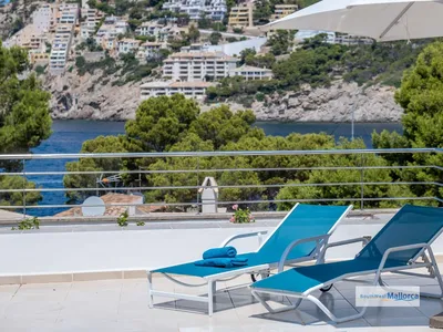 Spacious 4-bedroom semi-detached villa with 3 bathrooms. Modern design and close to Port Andratx amenitiesRelax in 3 bedrooms with partial sea views and 2 also have private terraces. The master bedroom offers a spacious retreat with a poolside terrace