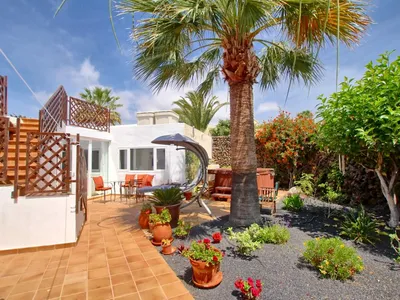The Lodge is a delightful detached three bedroom villa with three bathrooms accommodating up to six people. This exquisite villa is ideally situated within the prestigious area of Los Mojones This villa is tastefully decorated to a very high standard with 3 double bedrooms, 3 Bathrooms ,a superbly equipped kitchen and sumptuous sitting room. The master bedroom with its en-suite shower room has French doors that lead on to the terrace. For your comfort and enjoyment a TV Package with SKY Sports and Movies plus BBC1/2, ITV1,2,3,4, CH4/5, RTE1/2,TVE3 etc. is available. The terrace area has alfresco dining for 6 under the Pergola. For guests, sole use we provide a large hot tub for that stimulating and relaxing soak. This charming villa is suitable for couples or families that require that unique holiday experience and for use during those warm sultry evenings the villa is fully air-conditioned (coin operated). HIGH SPEED FIBRE OPTIC BROADBAND WIFI.Exterior: The terrace area is furnished with comfortable cushioned sun beds. A large hot tub spa Jacuzzi in a private walled area at the rear of the terrace is provided for that soothing and relaxing soak and Hydro-massage.