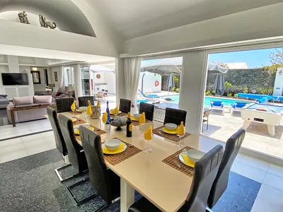 Villa Cartaphilus – Luxury 6 Bed Villa in Los MojonesThis luxurious 6 bedroom villa in Lanzarote has four bathrooms and accommodates 14 guests. Set in Los Mojones, Puerto del Carmen, Lanzarote. The villa is situated in a quiet and exclusive residential area but within easy walking distance of a large selection of restaurants, bars and supermarkets. A great location only a 13 Min walk to the Beach.