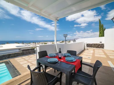 Very popular villa located in an elevated area of Puerto del Carmen and boasting panoramic views to the sea. This villa mixes contemporary and traditional styles and is bright and airy throughout. The villa also has air conditioning in the living room. Book early to not miss out!This villa can sleep up to 6 adults and 1 child plus an infant. The prices below are based on 1-4 guests. Please see the Prices and Occupancy section for further information. Please use price calculator to calculate the total cost for your group