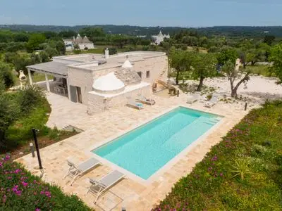 Trullo L'Uliveto is a delightful country house surrounded by generous nature, bathed in light. Crossing the threshold of the inner kitchen to the outside diner, unveils a gazebo fit for all occasions. Outdoor cooking facilities and a corner salon that invites a pause.