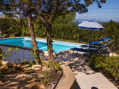 By David B. on 13-Jul-2019A very pleasant property with good facilities. The view from the terrace and pool area is exceptional and the garden is pretty in June and provides good screening. The location was very quiet during our stay and the pool & terrace are not overlooked. The property was very spacious (certainly for just two of us), comfortable and the aircon, which was severely tested due to abnormal temperature during our stay, is very efficient. The equipment provided is reasonable & quite comprehensive. If you like filter coffee, consider taking a supply of filter papers as we could not buy locally during our stay. The location of the property means a hire car is essential and the arrangements we used at Cagliari airport were efficient. Be prepared to spend a reasonable time in the car if you want to visit a range of beaches and cultural sights as many the roads are rural & therefore quite slow and somewhat quirky at times. Overall we enjoyed our stay despite abnormally high temperatures and the property is a nice place to spend time with good outside seating and a very nice pool.