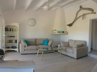 This villa is located in a quiet residential area.This is a lovely modern Villa. It is decorated with a white modern airy feel with a beach style twist.