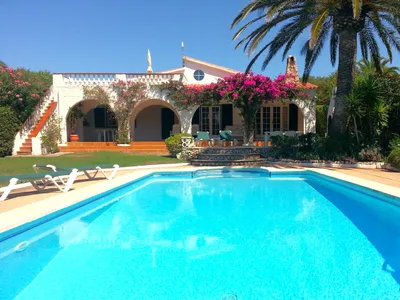 A charming detached two-bedroom air-conditioned villa with private swimming pool, set in grounds of a quarter of an acre, in rolling green countryside near the south coast of the beautiful island of Menorca.The villa, which is attractively furnished throughout, sleeps four or five people and is only 20 minutes drive from the airport and capital, Mahon. The nearby resort of San Jaime, with the island's longest beach - Son Bou, is just a 5 minute drive away. For those seeking a peaceful and private villa holiday without being too remote, Villa Lagartija offers the perfect location. There is a wonderful old farmhouse restaurant - Es Forn - just a few minutes walk away and plenty of bars and restaurants near the beach. WiFi internet access is available for clients' use, and Sky+ satellite TV with UK channels.