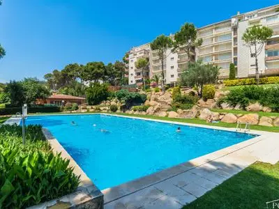 This spacious 2 bedroom, 1 bathroom apartment is in a block of apartments that are ideally located within a few minutes walk of the beach, shops and restaurants of the popular resort of Tamariu. There is one double bed and a set of bunk beds with an additional pull out bed making it great for 5. The fully fitted kitchen has dishwasher and microwave as well and an oven, hob and washing machine. The baloney has great views of the gardens and the surrounding pine wood forests. The gardens and communal areas of the apartments are maintained to a very high standard. The facilities include a lift. Tamariu is a very popular a beautiful seaside village. The small bay is surrounded by a rocky hillside which means as well as a pretty sandy beach there are some great locations for snorkelling and diving too. Many of the fabulous restaurants surround the lovely cove where there is also a night market which adds great ambiance to already beautiful cove. Ref. Sc90: 5th floor,
