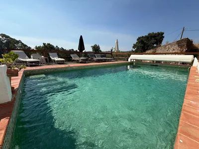 Welcome to our gorgeous home in the Eastern Algarve hills above Santa Catarina da Fonte do Bispo in the old village of Malhada do Judeu. We'd like to invite you to rent our holiday villa, available as either a 2 or 3 bedroom unit with all bedrooms being ensuite. We have a 8mx4m pool heated to 28c all year round. It benefits from daylong sunlight exposure and has a wraparound large outdoor decking platform with loads of space for sunbeds, rattan loungers , umbrellas and everything you'd expect really. Even a bar area! Good wifi is available throughout the property for when you need it but why not take the opportunity to unplug and do a digital detox!Our home is a traditional Portuguese house, split into 2 adjoining halves. South facing, we enjoy great sun all day long with the added benefit of stunning sunrises and sunsets with our easterly and westerly aspects. The rental half has 3 ensuite bedrooms and sleeps six comfortably, plus a sofa bed in the lounge. We live in the other half with our three friendly dogs.