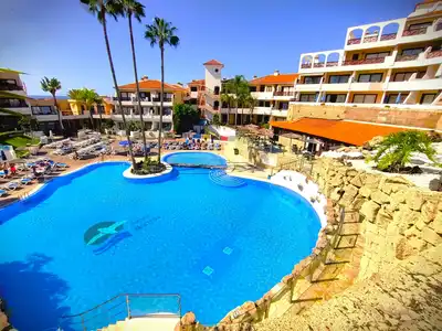 A beautiful sunny poolside modern apartment in Tenerife South with large TV, full kitchen, wifi and near to the sea. A great place for a sunshine holiday