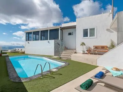 Casa Morro de la Molina is a stunning villa in Tías, offering breathtaking views of the Atlantic Ocean. This modern and spacious retreat features a stylish open-plan living area, a fully equipped kitchen, and three beautifully designed bedrooms and bathrooms—perfectly accommodating up to six guests.Stay active with your private gym and fitness equipment, or unwind in the serene surroundings. For families traveling with little ones, a baby cot is also available, ensuring a comfortable stay for all.