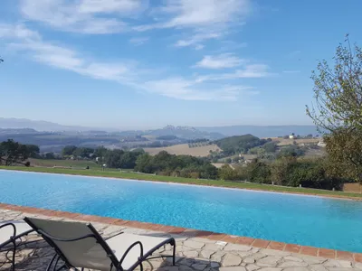 A luxury villa for 8 - 16, infinity pool & guest cottages. Panoramic view of beautiful Todi, Daily maid service & cook service available. High end support from owners and staff.