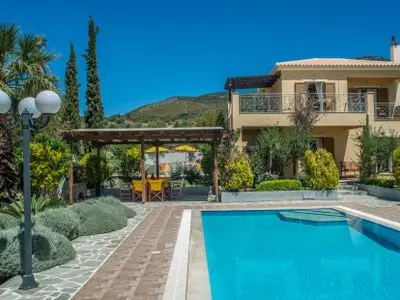 By Marcus E on 20-Mar-2013We have just returned from a 7 day holiday in Kefalonia and we stayed at Villa Ammnoy. The villa is absolutely beautiful, set in some stunning gardens with a great swimming pool. The views out to sea are amazing as is the view of the mountains at the back of the villa. Whether sitting by the pool, under the pergola or on the upstairs balconies you cannot help but be mesmerised by the beauty and tranquility of this place. Great facilities for outdoor dining with a huge BBQ and covered Pergola. The owner was extremely helpful in answering all our questions before going and even pre-booked a hire car for us which made things so much easier. We were given comprehensive directions to the villa from the airport along with some great recommendations for dining out. It is a great base from which to explore the whole island (whilst car hire is essential to explore the island - you could stay within walking distance of the villa and not get bored of the restaurants and tavernas). I would not hesitate to recommend this villa to anyone considering a holiday in Kefalonia.