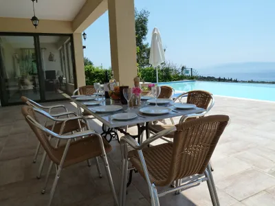 By John Hampshire on 04-Sep-2013Perfect Holiday 5/5 Stayed Jun 2012 JohnHampshire We stayed as a family of 5 adults and one 2 year old and were blessed with a week of near perfect weather. The villa is if anything better than the description and photos imply with ample space. The house, grounds and pool were spotless and well-maintained with good quality indoor and outdoor furniture. There are fantastic views across the bay and out to sea from the patio and bedrooms. The owner was friendly and helpful, the booking process was easy and our deposit was returned promptly. The location is good with travel along the coast road being very easy - but you will need a hire car. Instructions for finding the villa were clear and apart from overshooting the turn-off by 400m, we had no problems. However, don't lose the instructions as you will definitely need them. The villa is down a shared narrow track that varies in quality from rough to reasonable concrete and the trip to the local bakers (limited range, but very good) on the main road is about 1km. A decent, sandy beach is about 2km down the hill - walkable but a long climb back up if you have young children. Even at the beginning of June the water was warm enough to swim in. We mainly ate in, but the nearest restaurant down towards the beach is to be avoided. Lorraine's, about 5km away, was much, much better. Life was so easy and pleasant at the villa that we hardly saw anything of Kefalonia but what we did see was pleasant but not picture postcard, mainly because most of the island was destroyed in a 1953 earthquake. We booked this as a special family holiday and it exceeded expectations for young and old alike. The villa is superb and I have no hesitation in recommending it. Submitted 4 Sep 2013