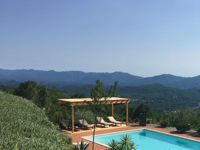 The house is set on the hills in front of the Apuan/Appenine mountains in Lunigiana in the Northern tip of Tuscany. Access is via a private road and the property is set in 3 hectares of land providing complete privacy. The land beyond is predominantly woodland. The house was built 15 years ago using traditional methods. The roofs are constructed using chestnut beams. The floors downstairs are stone and upstairs are solid oak. All the doors, shutters and staircase are hand-made. The pool is 15m x 6m. The depth is c.1.10m in the shallow end and c.2m in the deep end with a diving board. In addition to the terraced area surrounding the pool there is in total 200+ sq.m surrounding the house, ideal for relaxing and dining. The house has a fast speed internet connection via a fixed cable or wireless.Days out can be spent walking, in the mountains, visiting festas or trips to the coast including Lerici, Forte dei Marmi and Viareggio. For day trips to the Cinque Terre we recommend the train from Villafranca which goes direct. A fantastic day trip is the 9.14 a.m. direct to Monterosso, a walk around the town, lunch at one of the many restaurants or our friends restaurant on the cliff tops then take the boat back to La Spezia. An aperitivo in the town then the train back to Villafranca/Bagnone.