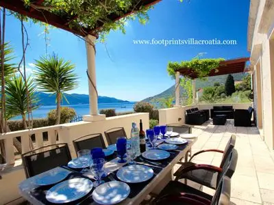 Footprints Villa is a large detached 5 bedroom villa with private pool right on the seafront in the lovely mainland village of Viganj, Croatia.I also have my own web site. Booking deposit 25%. Balance only due 8 weeks before your holiday. Click 'PRICES' to view my rates.